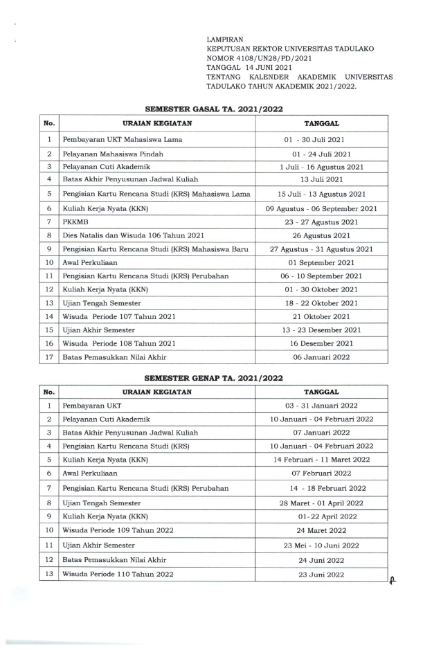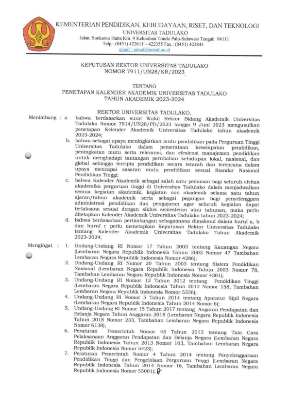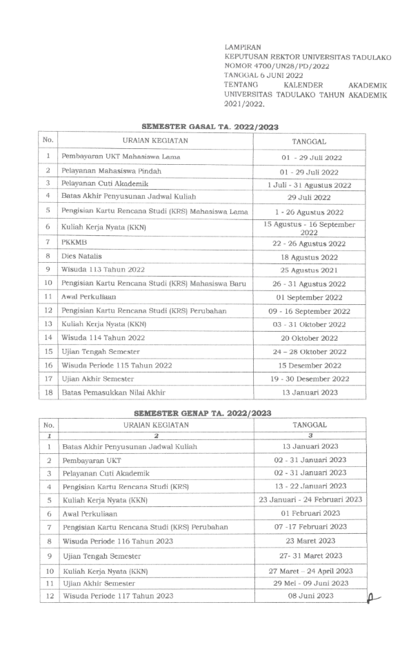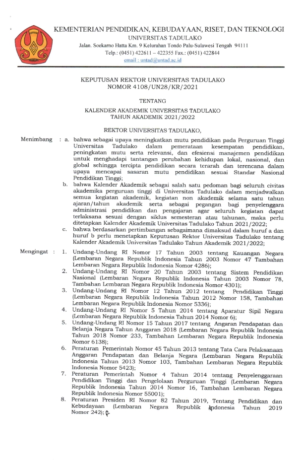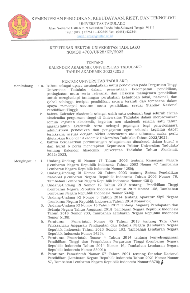KALENDER AKADEMIK KALENDER AKADEMIK UNTAD T.A. 2021/2022 KALENDER AKADEMIK UNTAD T.A. 2022/2023 KALENDER AKADEMIK UNTAD T.A. 2023/2024